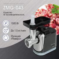 Мясорубка имеет 1 скорость работы. Если вам необходимо удалить застрявшие в мясорубке куски мяса и жилы, не нужно разбирать мясорубку, достаточно лишь просто включить реверс.