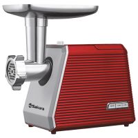 Максимальная мощность 3500Вт, нож нерж. сталь, металлический шнек, функция реверс, 2 диска для фарша (5, 7мм), насадки для кеббе и колбас, материал лотка-пластик, защита от перегрузки