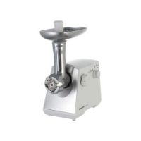 Корпус мясорубки имеет современный дизайн. Лоток для подачи мяса – металлический. Мясорубка легка в уходе и обслуживании, на корпусе находится рычаг фиксации рабочего блока, который облегчает процесс сборки и разборки прибора. Благодаря прорезиненным ножкам, устройство надежно фиксируется на поверхности в процессе работы. В комплектацию входят 3 решетки из нержавеющей стали, отверстия: ∅ 8/5/3 мм для крупной, средней и мелкой рубки, а также насадки для приготовления колбасных изделий и кеббе.