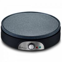 Рабочая поверхность блинницы имеет специальное антипригарное покрытие, что сводит к нулю подгорание продукта, а также облегчает процесс её очищения по завершении рабочего процесса. Устройство дополнено специальным отсеком для компактного хранения сетевого кабеля, сменной поверхностью для приготовления 4-х блинчиков, 2-мя лопатками, распределителем для теста и половником для теста.