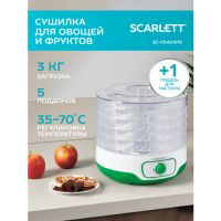 мощность 300 Вт, 11 поддонов: 8 регулируемых по высоте съемных поддонов, 3 поддона для пастилы, установка температуры от 35 до 70 С, встроенный вентилятор, световой индикатор