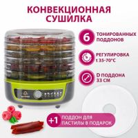max 700W, 6 поддонов для сушки, электронный контроль температуры от 35 до 70°C, Таймер до 72 часов, LED дисплей, Встроенный вентилятор, 6 разборных поддонов, световой индикатор