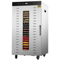 Электрическая сушилка предназначена для сушки овощей, фруктов, ягод, грибов, корнеплодов, трав и зелени, а также мяса и рыбы, хлеба. Устройство оснащено панелью управления, с помощью которой можно настраивать температуру и время, а также включать подсветку. Температуру сушки можно изменить от 35 до 80 °C с шагом 1 °C. Таймер настраивается до 24 часов работы с шагом 30 минут. Сушилка также оснащена переключателями. Переключатель «Подсветка» включает и выключает подсветку камеры. Переключатель «Вращение» включает и выключает вращение поддонов. Вращение поддонов позволяет добиться равномерного высушивания продуктов. В сушилку установлен мощный нагревательный элемент и два вентилятора, обеспечивающие равномерное распределение нагретого воздуха по всему объёму камеры. Благодаря горизонтальному обдуву смешение запахов при одновременной сушке разных продуктов минимально. Сушилка имеет в комплекте 26 металлических поддонов – для большинства типов продуктов, 26 сеток – для небольших продуктов, таких как травы и ягоды, а также 26 пластиковых сплошных поддонов – для сушки водянистых фруктов и овощей.