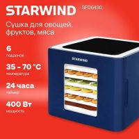 Мощность 750 Ватт, 7 поддонов: 4 разборных поддона для сушки, 1 обычный поддон, 2 для пастилы. Плавная регулировка температуры от 35 до 70°C, встроенный вентилятор,