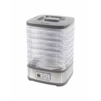 500W, объем 9 л, 4 поддона из жаропрочного пищевого пластика, усовершенствованная система циркуляции воздушного потока между поддонами, горизонтальный обдув камеры, электронный контроль температуры 40-70°C, установка времени до 48 ч, LED дисплей, встроенный вентилятор, бесшумная работа. Корпус из нержавеющей стали.