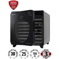 В сушилке установлен мощный нагревательный элемент и 2 вентилятора большого диаметра, обеспечивающие равномерное распределение нагретого воздуха по всему объёму камеры. Благодаря горизонтальному обдуву смешение запахов разных продуктов минимально.