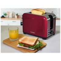 Механический регулятор позволяет выбирать один из семи режимов прожарки. Кнопки управления снабжены подсветкой, есть индикатор степени поджаривания. Конструкция оборудована прорезиненными ножками, в комплект входит поддон для крошек. При застревании хлеба или перегреве устройства срабатывает автоотключение. Габариты тостера - 19х29х17 см, вес - 1,5 кг.