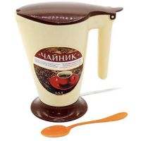 Компактный дорожный чайник пригодится вам в поездках и путешествиях. Электрический маленький чайник имеет компактные размеры. Мини-чайник изготовлен в России. Чайник малыш имеет объем 0.5л. Компактный Электрический чайник выполнен из качественный материалов. В комплект к чайнику входит пластиковая ложка. Перед использованием прочитайте инструкцию, которая находится внутри чайника. Чайник-кипятильник отлично подойдет для дачи, работы, а также походов, больниц и командировок. Чайники благодаря своим размерам поместится в любую сумку. Дорожный чайник электрический выполнен в бежевом цвете. Дорожный электрочайник.