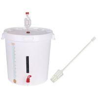 Улучшенный комплект для брожения - это необходимый каждому самогонщику и виноделу комплект для брожения, модернизированный стандартный комплект для брожения, который дополнен также термометром-полоской для контроля температуры внутри бака и наклейкой-шкалой для отображения количества емкости внутри бака.