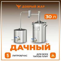 Комплектация: перегонный куб, царга, дефлегматор, арка, холодильник, носик отбора продукта, клапан связи с атмосферой, кламп, прокладка силиконовая, термометр цифровой 2 шт, игольчатый кран 1 шт, тройник 2 шт, насадка Панченкова 3 шт, шланг ПВХ 4 м, переходник на кран, кран для слива барды, книга с рецептами, фирменная коробка.