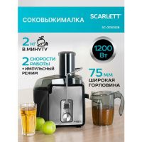 Широкий желоб диаметром 75мм позволяет загружать целые плоды, не разрезая их на части. Корпус из нержавеющей стали и фильтр из нержавеющей стали обеспечивают долговечность и гигиеничность использования. Контейнер для мякоти имеет объем 2 литра, а контейнер для сока - 1,1 литра. Благодаря противокапельной системе и прорезиненным ножкам, соковыжималку легко использовать и переносить.