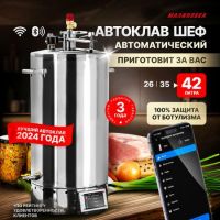 Автоклав Смарт Шеф – это не просто автоклав с ТЭНом, а устройство, которое позволяет автоматизировано консервировать продукты. Вы можете готовить не только в банках, но и в реторт-пакетах на воде и на пару. Он независим от плит и мобилен, т.к работает от электросети.