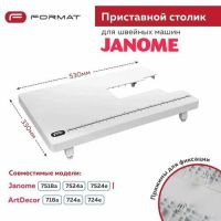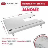 Приставной столик для швейной машины Format изготовлен из абс-пластика, имеет идеально гладкую поверхность. Ножки можно регулировать по высоте, они складные, поэтому когда Вы не пользуетесь столиком, его удобно хранить. Размер 530х330 значительно расширяет рабочую поверхность и равномерно распределяет вес ткани, что позволяет работать с большими проектами (постельное бельё, шторы, квилтинг, пэчворк). Расширяйте свои творческие границы с фирмой Format