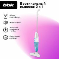 Корпус и цельная трубка выполнены из пластика. Для сбора частиц пыли и загрязнений в устройстве применяется контейнер объемом 0,45 л с циклонным принципом работы, за счет чего упрощается процесс очищения - при заполнении емкости, ее нужно перевернуть и вытряхнуть всю грязь. Благодаря высокой мощности всасывания (до 210 Вт) пылесос быстро собирает крупные и мелкие частицы, шерсть, волосы. Вертикальная парковка обеспечивает компактное хранение. При перегреве пылесос автоматически отключается.
