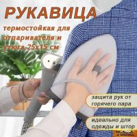 Варежка из термостойкого тефлонового материала, предназначена для защиты рук от ожогов горячим паром при работе с отпаривателем или другими паровыми гладильными приборами.