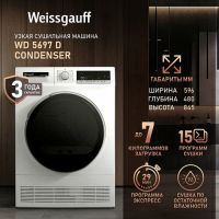 Максимальная загрузка, кг-8; Класс эффективности конденсации-В; Количество программ-16; Продолжительность цикла-настраиваемая; Класс энергопотребления-В; Цвет-белый; Ширина, мм-595; Глубина, мм-615; Высота, мм-845; Тип сушки-Конденсационная; Работа без подключения к канализации-Есть; Вес, нетто-39; Диаметр дверцы-480; Диаметр люка-375; Угол открытия дверцы-180; Объем барабана-105; Уровень шума-69; Блокировка от детей-Есть; Звуковой сигнал-Есть; Прозрачная дверца-Есть; Длина кабеля-1.5; Тип кабеля-Евровилка; Тип управления-Электронное; Тип дисплея-led; Номинальная сила тока-10; Номинальная мощность-2200; Номинальная частота сети-50; Номинальное напряжение-220-240; Страна производства-Китай; Срок гарантии-1; Срок службы-5;