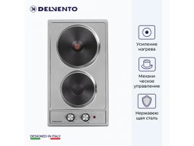 Варочная панель электрическая DELVENTO V30E02M001 / 30 см / 2 конфорки (1 быстрый нагрев) / фронтальная панель управления / 3 года гарантии / серебристый цвет / нержавеющая сталь 101842363407