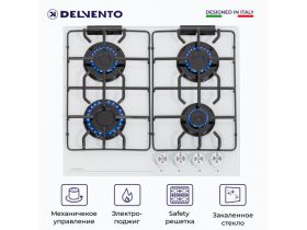 Варочная панель газовая DELVENTO V60H40C088 / 60см / белый / закаленное стекло / эко чугун / 3 года гарантии 102324608043