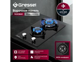 Газовая варочная панель GRESSEL U30H20S001 30 см, закаленное стекло, WOK-конфорка, автоматический розжиг, газ-контроль, чугунные решетки 103594344486