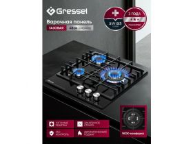 Газовая варочная панель GRESSEL U45H35S001 45 см, закаленное стекло, WOK-конфорка, электроподжиг, газ-контроль 5225730275