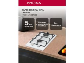 Газовая варочная панель встраиваемая 30 см KRONA PARTITA 30 WH 1780142144