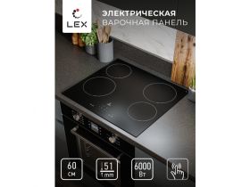 Электрическая варочная поверхность, встраиваемая LEX EVH 6040 BL, четырехконфорочная, сенсорное управление 103663107168