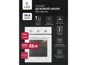 Электрический духовой шкаф LEX Духовой шкаф встраиваемый электрический 7-функций LEX EDM 4570 45 см белый 101648267732