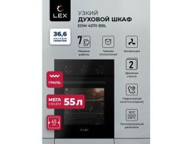 Духовой шкаф электрический встраиваемый LEX EDM 4570 BBL, с конвекцией, Механические ручки, объем 53 л, 7 режимов работы, двойное остекление дверцы, гарантия 36,6 мес. 4314864948