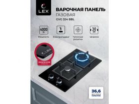 Варочная панель газовая LEX GVG 324 BBL, встраиваемая, механическое управление, чугунные решетки, газ-контроль, электроподжиг 102904084976