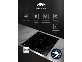Варочная панель встраиваемая, электрическая MILLEN MEH 451 BL, Защита от перегрева, Индикатор остаточного тепла, Кнопка блокировки панели, Отключение при выкипании, Материал Стеклокерамика 4330726638