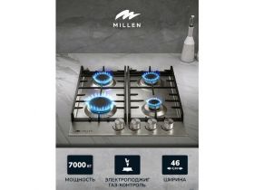 Варочная панель встраиваемая, газовая MILLEN MGH 452 IX, серый металлик, ширина 45 см, 4 конфорки, материал поверхности: нержавеющая сталь, материал решёток: чугун, электроподжиг, газ-контроль 103821147294