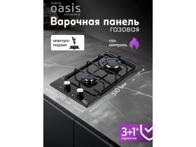 Варочная панель газовая Oasis P-3GBT, 3 конфорки, газ-контроль, электроподжиг, черная 1780141414