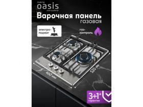 Варочная панель газовая Oasis P-3GBT, 3 конфорки, газ-контроль, электроподжиг, черная 4453990560
