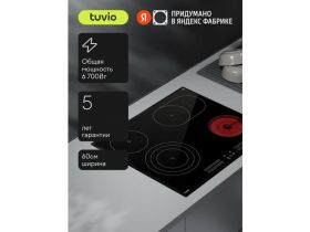 Электрическая варочная панель Tuvio HRS65BB21, 60 см, черный, трехконтурная зона, защитное автоотключение 4598749136