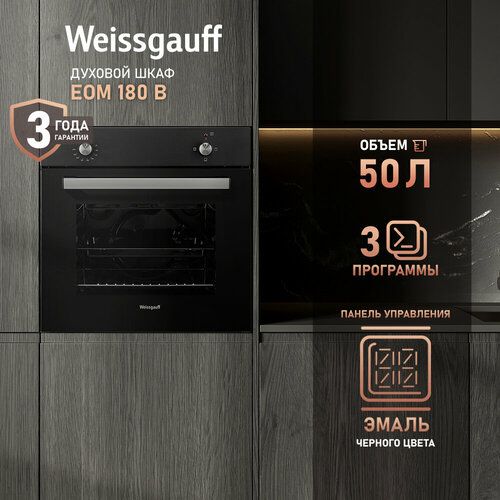 НАЙТИ ВЫГОДНЕЕ - Электрический духовой шкаф Weissgauff EOM 180 B, гарантия 3 года, Эмаль SMART CLEAN, Двойное стекло дверцы, Класс энергопотребления А