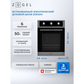 Выбирая электрический духовой шкаф ZUGEL ZOE451X, вы получаете современное, функциональное и безопасное решение для вашей кухни.