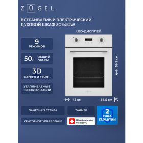 Электрический духовой шкаф ZUGEL ZOE452W - это современное и функциональное решение для вашей кухни.