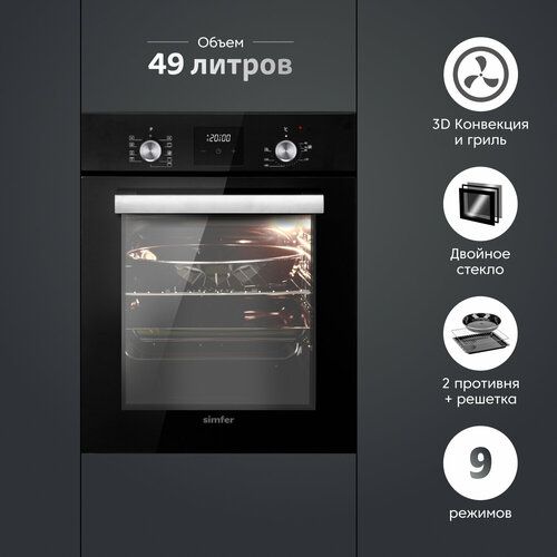 НАЙТИ ВЫГОДНЕЕ - Электрический духовой шкаф Simfer B4EB59070 (9 режимов работы, гриль, таймер, турбо-конвекция, черный)