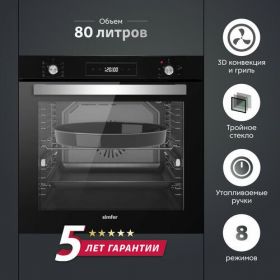 Готовьте с удовольствием с электрическим духовым шкафом Simfer B6ES69070 и наслаждайтесь восхитительными результатами каждый раз 80л.
