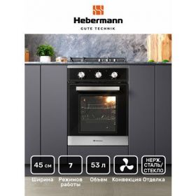Электрический встраиваемый черный духовой шкаф HBBO 4507.1 имеет ширину всего 45 см, которая позволяет установить его даже в мини шкаф для кухни. Модель крупной бытовой техники для дома оснащена комфортной подсветкой и 7 режимами нагрева, включая нижний и традиционный, а также конвекцию и турбо гриль. Благодаря комбинации этих режимов духовая мини печь с конвекцией и грилем сделает блюдо еще более вкусным и ускорит приготовление. Кроме того, в электрической мини печке реализована специальная технология для готовки в режиме низкотемпературного томления. Мультипечь имеет съемную дверцу, особое эмалированное покрытие и хромированные направляющие, что упрощает эксплуатацию и чистку встраиваемой электродуховки. Дверца с двойным стеклом надежно удерживает тепло внутри рабочей камеры, поэтому нагрев происходит быстро, а ваши руки будут в безопасности. Если вы еще не определились с размером электро печки, электрические встраиваемые духовки на 60 см также представлены в нашем каталоге. В каталоге Hebermann вы можете подобрать компактный или большой встроенный духовой шкаф с гарантией 2 года для своего комплекта встраиваемой техники для кухни.