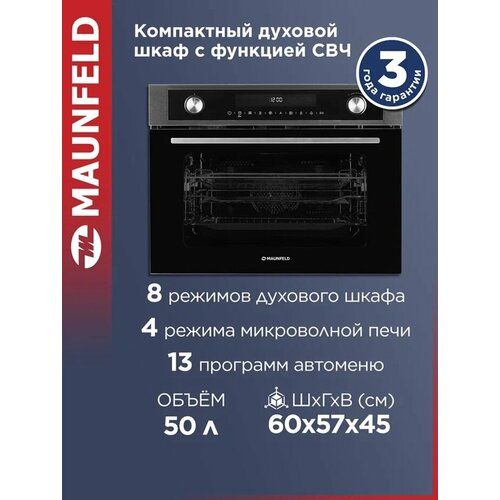 В целом, компактный духовой шкаф с функцией СВЧ MAUNFELD MCMO5015MFS - это надежный, функциональный и стильный выбор для вашей кухни.