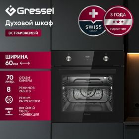 Духовой шкаф Gressel U6ES58110 предлагает внушительную вместимость 70 литров и широкий ассортимент режимов приготовления, что делает его идеальным выбором для современной кухни. С его помощью можно легко готовить большие объемы пищи или несколько блюд одновременно благодаря функциям двойного гриля, конвекции и специальному режиму разморозки.