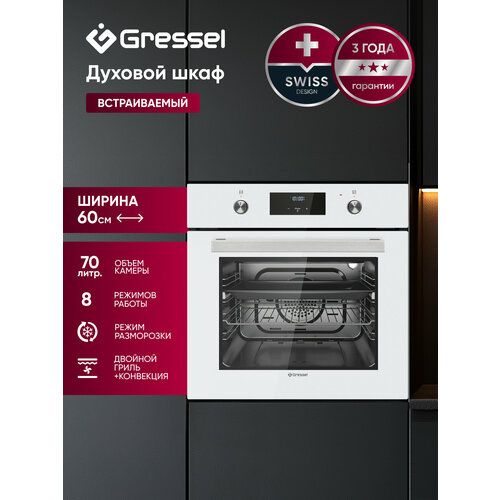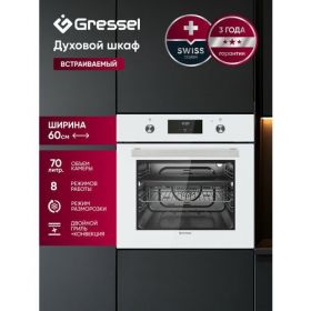 Духовой шкаф Gressel U6EC58110 предлагает внушительную вместимость 70 литров и широкий ассортимент режимов приготовления, что делает его идеальным выбором для современной кухни. С его помощью можно легко готовить большие объемы пищи или несколько блюд одновременно благодаря функциям двойного гриля, конвекции и специальному режиму разморозки.