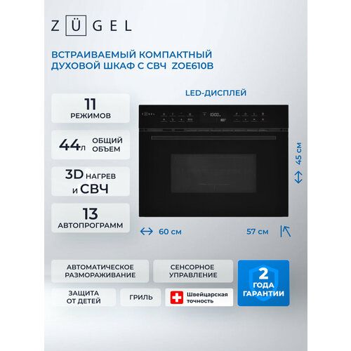 Встраиваемый компактный духовой шкаф с СВЧ ZUGEL ZOE610B это идеальное решение для современных кухонь. Объединяя функции духового шкафа и микроволновой печи, он предлагает многофункциональность и экономию пространства. Стильный черный корпус придаст любому интерьеру элегантный вид.