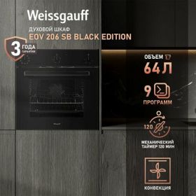 Духовой шкаф электрический Weissgauff EOV 206 SB Black Edition черный