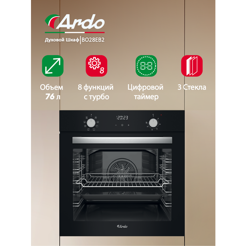 Встраиваемый духовой шкаф Ardo BO28EB2 это идеальное решение для тех, кто ценит функциональность и стиль в кухонной технике. С этим духовым шкафом вы сможете готовить разнообразные блюда с применением различных методов, так как он предлагает 8 режимов работы, позволяя вам создавать кулинарные шедевры, соответствующие вашим предпочтениям.