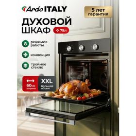 Электрический встраиваемый духовой шкаф – это универсальное решение для вашей кухни, позволяющее легко готовить разнообразные блюда. Объем в 79 литров предоставляет достаточно пространства для запекания крупной птицы, запеканок и многих других угощений, а наличие 8 режимов приготовления открывает широкий спектр кулинарных возможностей. Легко можно настроить оптимальные условия для выпекания хлеба, приготовления мяса или запекания овощей.