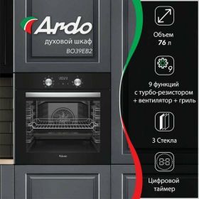 Название: Встраиваемый духовой шкаф Ardo с грилем и конвекцией, объем 76 л, 9 режимов, тройное остекление дверцы, съемные стекла, 60 см, черный