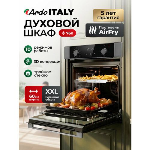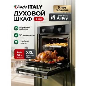 Встраиваемый духовой шкаф Ardo BO410EAS2 - идеальное решение для вашей кухни. С объемом 76 литров и 10 режимами работы, этот духовой шкаф способен удовлетворить все ваши кулинарные потребности. Он оснащен функцией аэрогриля AirFry с технологией Cycle Pro, позволяющей готовить блюда с минимальным количеством масла, обеспечивая при этом хрустящую корочку и насыщенный вкус.
