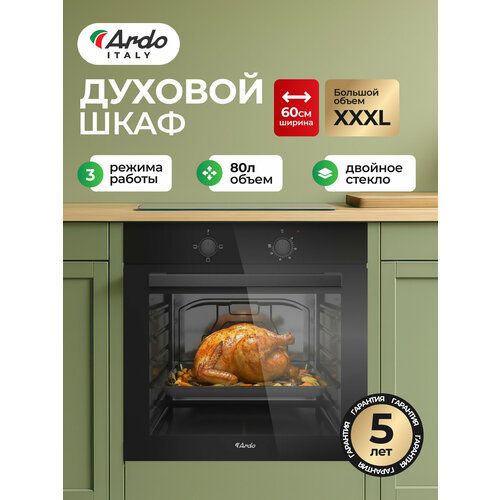 НАЙТИ ВЫГОДНЕЕ - Встраиваемый духовой шкаф Ardo BO13MB2 XXXL, 80 литров, Двойное стекло дверцы, Съемные стекла дверцы, 3 функции, Эмаль SMART CLEAN, Паровая очистка, Класс энергопотребления А